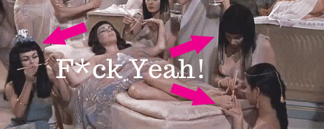 Oh ja, wir beginnen direkt mit dem, was diesen Blog sowieso dominiert. Hier sehen wir gleich vier Damen, die sich um Füße und Hände der ägyptischen Herrscherin kümmern. Im Gegensatz zu so manchem Fetischfan im Internet, der “voll geiel deinr Füse für 100 Eurpo ableken!” will, sind diese Sklaven mehr als qualifiziert für ihren Job.