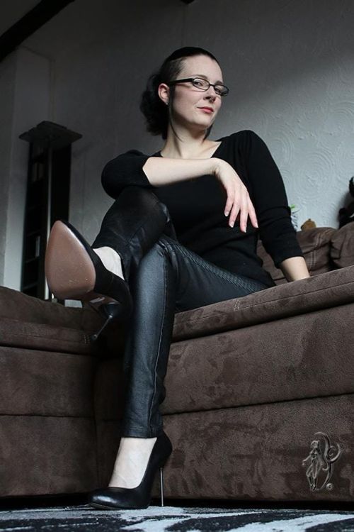 T.: Sklaven begrüßen ihre Herrinnen wie immer brav mit dem Stiefelkuss. Wie verabschiedet man sich allerdings von ihr?
